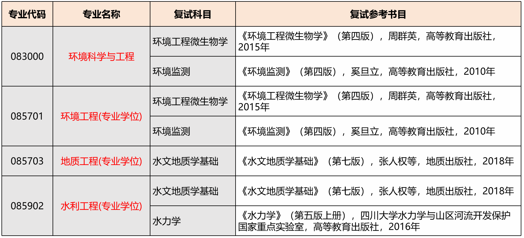 ◆水污染控制工程、大气污染控制工程、固体废物资源化及安全处置、环境影响评价、环境规划、土壤及地下水修复工程、生态环境保护、环境管理与工程管理等。