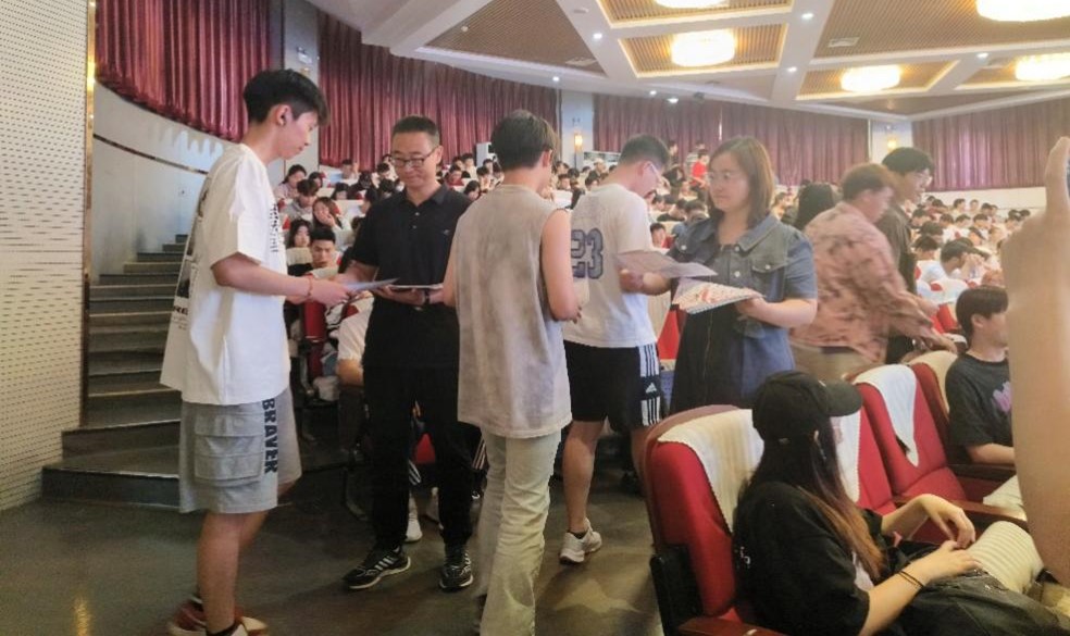 活动入场时向学生派发资助政策和助学贷款政策宣传页