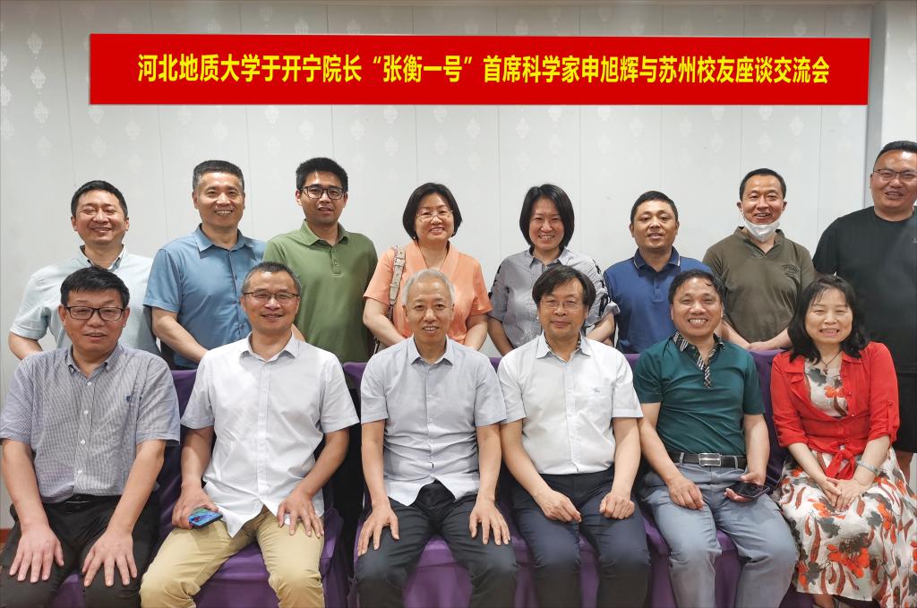 的办学历史及特色、发展理念、学科专业及平台建设、传统与优势,并针对校友们关心的校庆事宜进行了交流。程彬介绍了苏州民用院的发展历程。苏州民用院由市房地产管理局直属事业单位改制而成,主营工业与民用建筑设计,岩土工程勘察、设计、施工等专业技术服务,为苏州市及周边地区的工程建设做出了积极的贡献。苏州民用院是母校水工环专业毕业生的发祥地,5位校友曾在此工作,有老带新开启工程勘察、设计、施工的职业发展历程。申旭辉院士与苏州校友分享了自己在母校的求学经历,以及此后紧跟国家安全发展战略方向,由水文地质工程地质、构造地质专业向地球空间技术研究转变的经历,回答了苏州校友感兴趣的“张衡一号”电磁测控卫星的技术应用等问题。