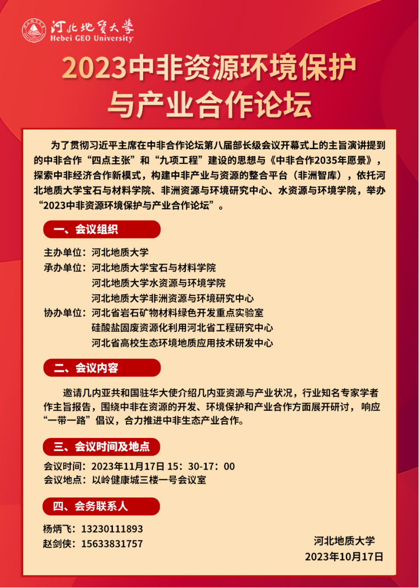 2023年11月17日,“2023中非资源环境保护与产业合作论坛”在石家庄隆重召开。本次论坛由黄色主播