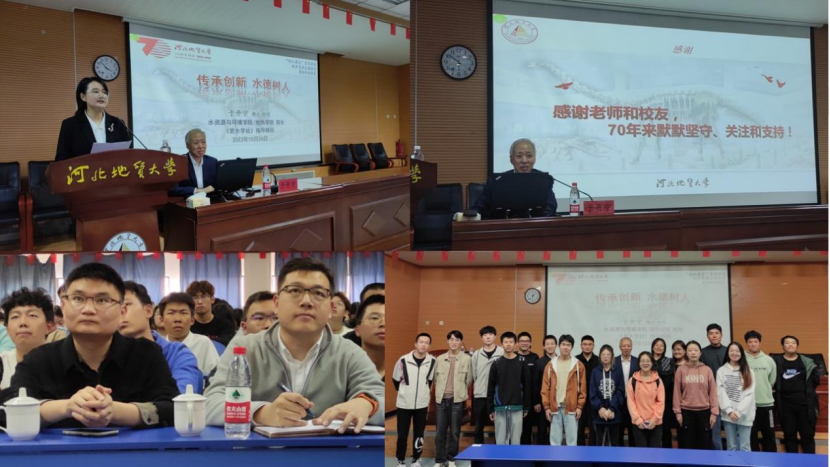 共同举办“悟水讲堂”、“水悟人生梦想未来”文艺晚会、院长“传承创新 水德树人”主题报告会、“讲好伟人故事·欢庆七秩华诞”演讲比赛、“家乡水文化分享会”,参与学科专业建设研讨会暨校友座谈会、中国地质学会“三专委”年会等系列活动。在11月18日校庆当天,若水学社成员积极参加“98级校友座谈会”,听校友分享,感悟水情怀;举办了“水文化知识普及”活动庆母校建校70周年。