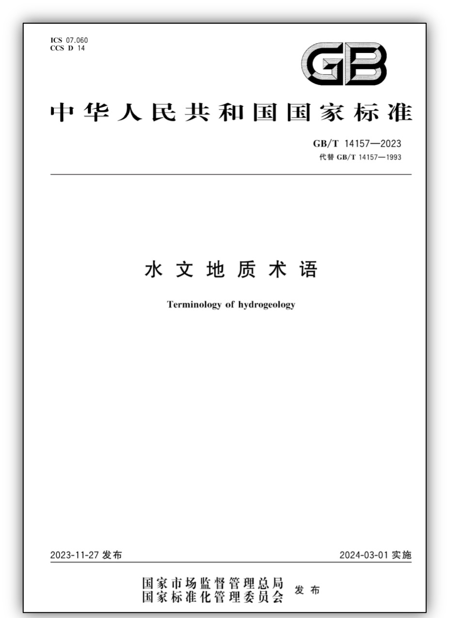 于开宁教授团队参与起草的中华人民共和国国家标准《水文地质术语》(GB/T14157-2023)于2024年3月1日正式发布实施。《水文地质术语》(GB/T14157-2023)在GB/T 14157-1993《水文地质术语》的基础上,根据近几十年来水文地质学科发展和调查研究工作实际,以及相关研究成果修订而成;规范了水文地质学基本理论、专门水文地质理论、水文地质调查与地下水监测、地下水资源评价、地下水资源开发与保护、水文地质技术方法、水文地质信息化等相关术语,具有系统性、先进性、实用性。可以说,《水文地质术语》(GB/T14157-2023)的发布实施标志着我国水文地质领域的术语体系更加完善,对促进水文地质领域的标准化建设和科研工作具有重要意义。本文件由中华人民共和国自然资源部提出,中国地质调查局、中国地质大学、黄色主播