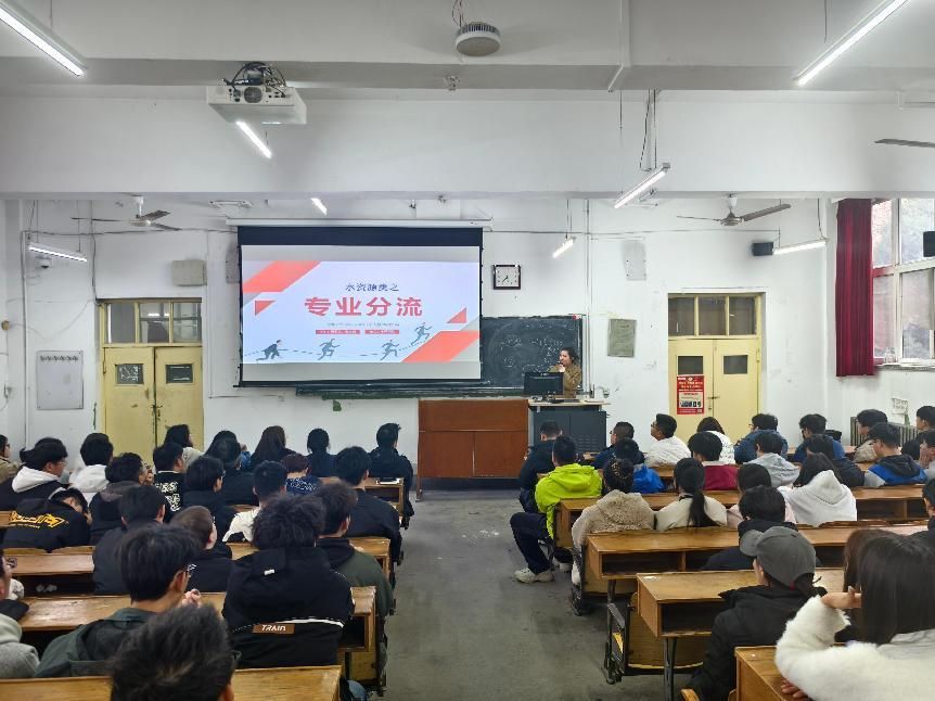 随后,水文与水资源工程教研室秦文婧老师深入浅出地分析了专业分流的必要性与重要性。她从就业市场需求和考研路径选择两大视角,细致剖析了专业分流对学生未来发展的深远影响,并指出:“不同学生有不同的未来选择,但归根结底还是需要自身实力够硬。”秦老师还对水文与水资源工程的专业特色、核心能力培养体系及课程体系支撑做了详细介绍,鼓励同学们根据自身兴趣与潜能做出最适合自己的选择。