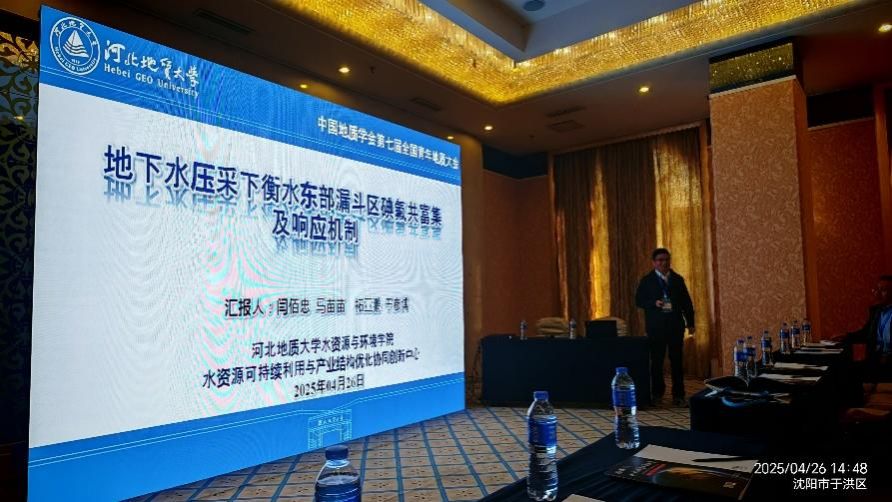师生积极参与会议交流并展开讨论。闫佰忠教授作为分会场召集人主持了研究生分论坛。同时闫佰忠教授作了题为“地下水压采下衡水东部漏斗区碘氟共富集及响应机制”的学术报告;青年教师营娇龙作了题为“北京市永定河及潮白河流域地表水地下水中典型抗生素的检测方法及检出情况”的特邀报告。