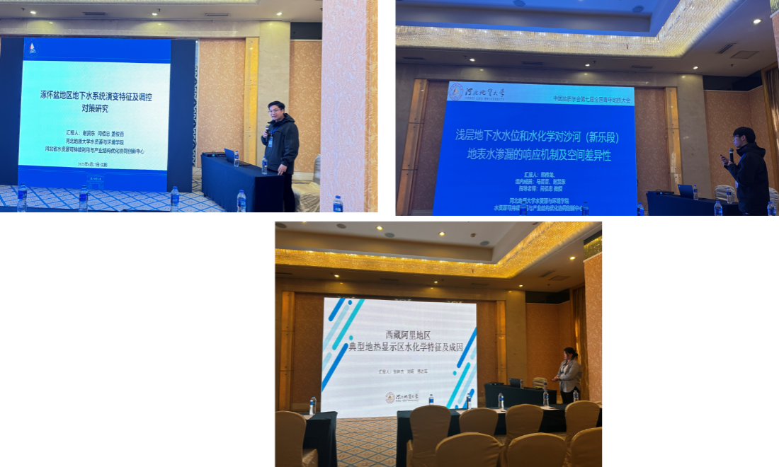 研究生谢贤东、韩传龙、曾琪峰、张琳杰和本科生胡棕翔参与了此次会议。其中研究生谢贤东作了题为“涿怀盆地区地下水系统演变特征及调控对策研究”的学术报告,韩传龙作了题为“浅层地下水水位水化学对沙河地表水渗漏的响应机制及空间差异性”的学术报告,张琳杰作了题为“阿里地区典型地热显示区水化学特征及成因”的学术报告。
