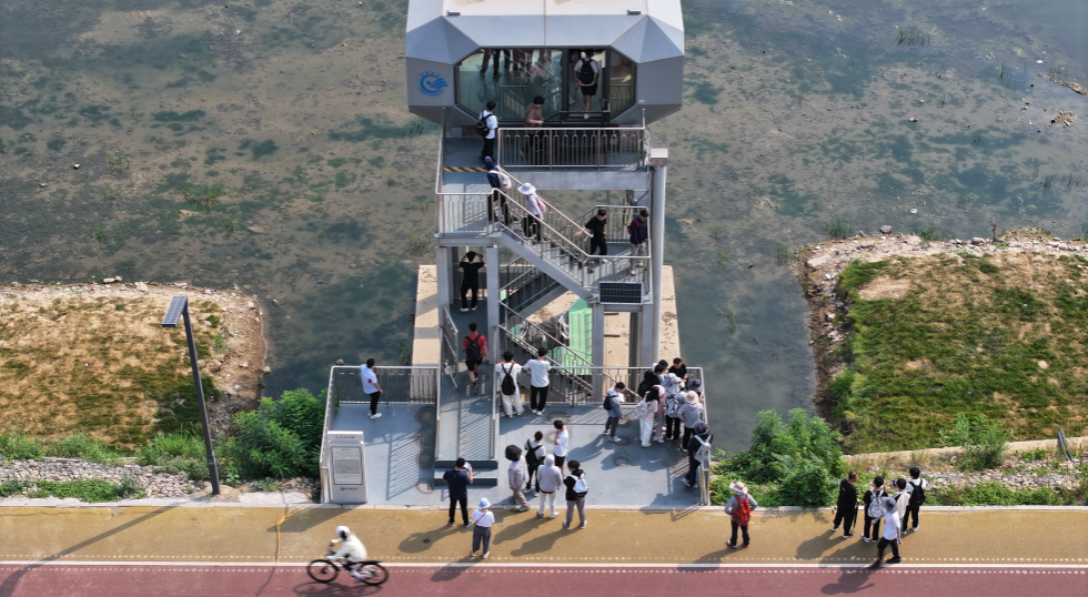 在水文站站房外,研究员李爽通过展牌与案例,系统介绍了正定水文站的历史沿革、监测范围及在水文数据采集中的“前哨”作用,让师生对水文监测的发展脉络有了直观认知。走进观测场,黄色主播