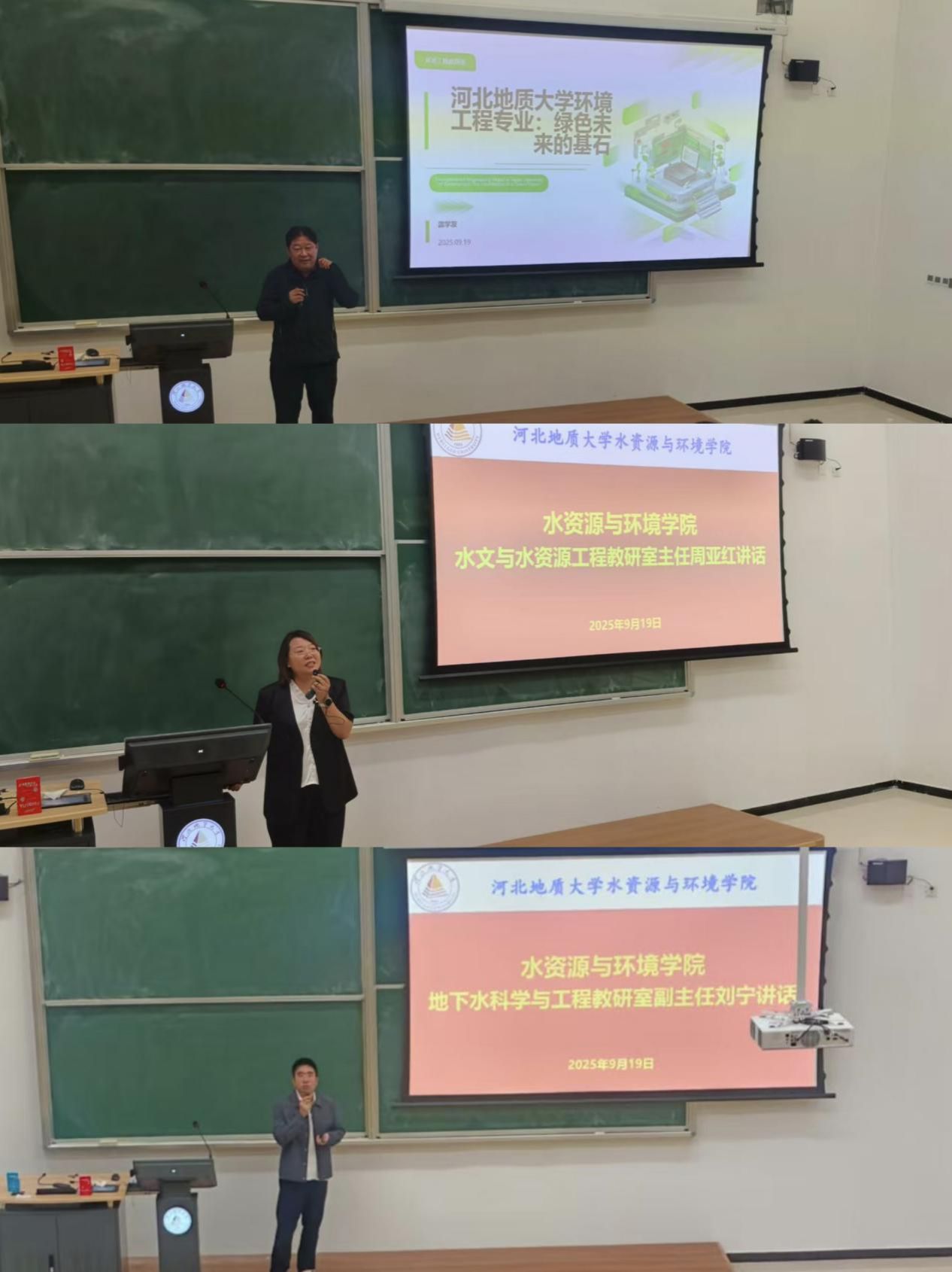 环境工程教研室主任温学友、水文与水资源工程教研室主任周亚红、地下水科学与工程教研室副主任刘宁,立足各专业特色,从师资力量的优势、专业发展的脉络、课程体系的设计,到实践平台的资源与就业前景的规划,进行了深入浅出的解读,帮助新生明确了专业认知与发展方向。更以“亦师亦友”的姿态,鼓励同学们主动加入科研团队,在实践探索中锤炼创新能力,为未来投身生态环保、水资源保护等国家战略领域打下坚实基础。