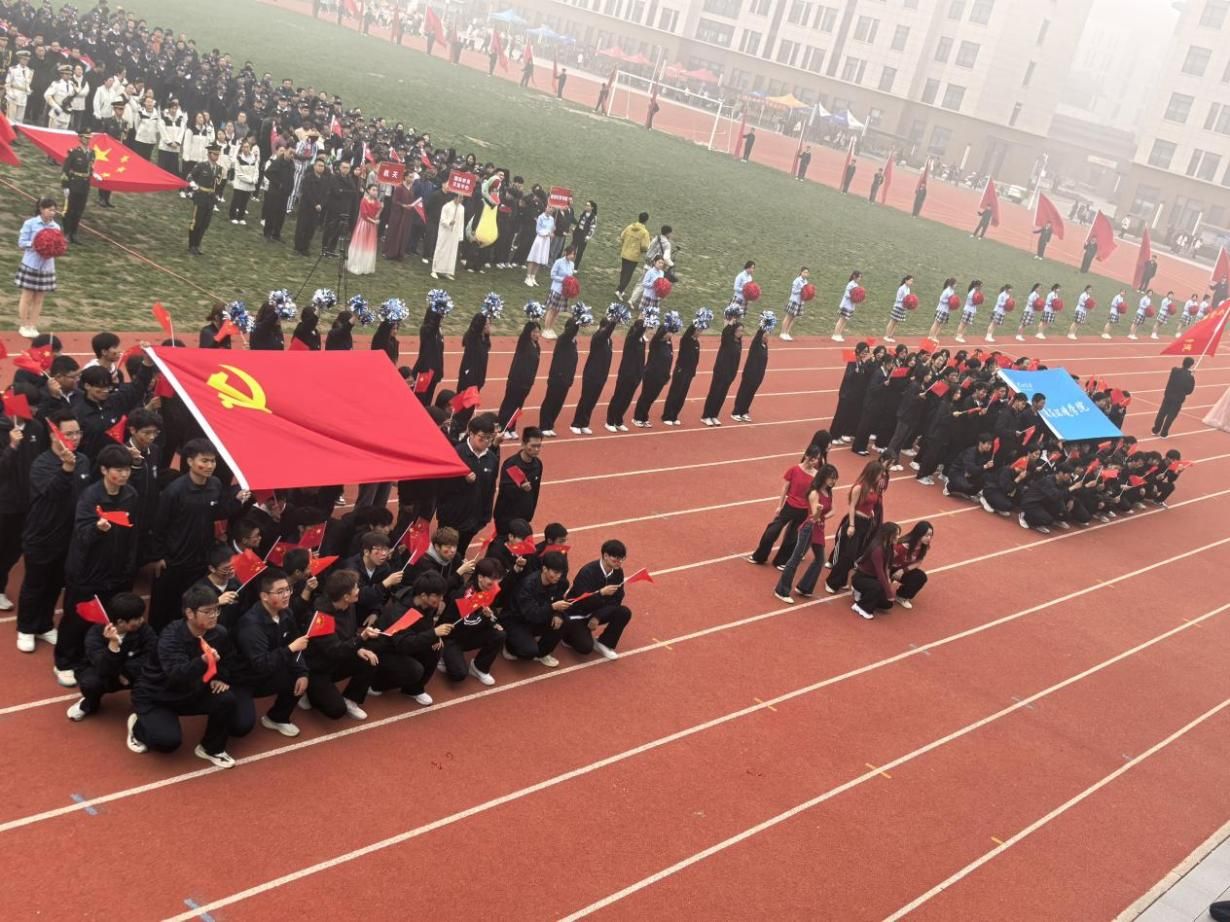 方阵以鲜明的专业特色和昂扬的精神风貌亮相开幕式,成为全场瞩目的焦点。行进间,水环学子步伐铿锵、整齐划一,嘹亮的口号“党旗映蓝,水润初心;强国有我,传承创新”响彻赛场,既展现了守护绿水青山的专业使命,也表达了新时代青年勇担强国重任的坚定信念,赢得现场阵阵掌声。