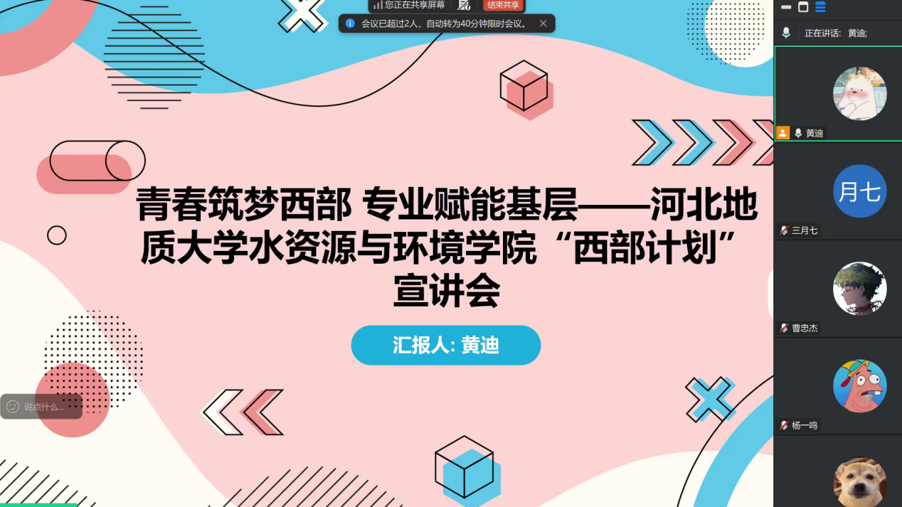 近日举办线上西部计划志愿者宣讲会,邀请2016届环境工程专业优秀毕业生黄迪担任主讲。黄迪结合自身在河北省乡村的基层服务经历,为在校生带来了一场生动的实践分享会。