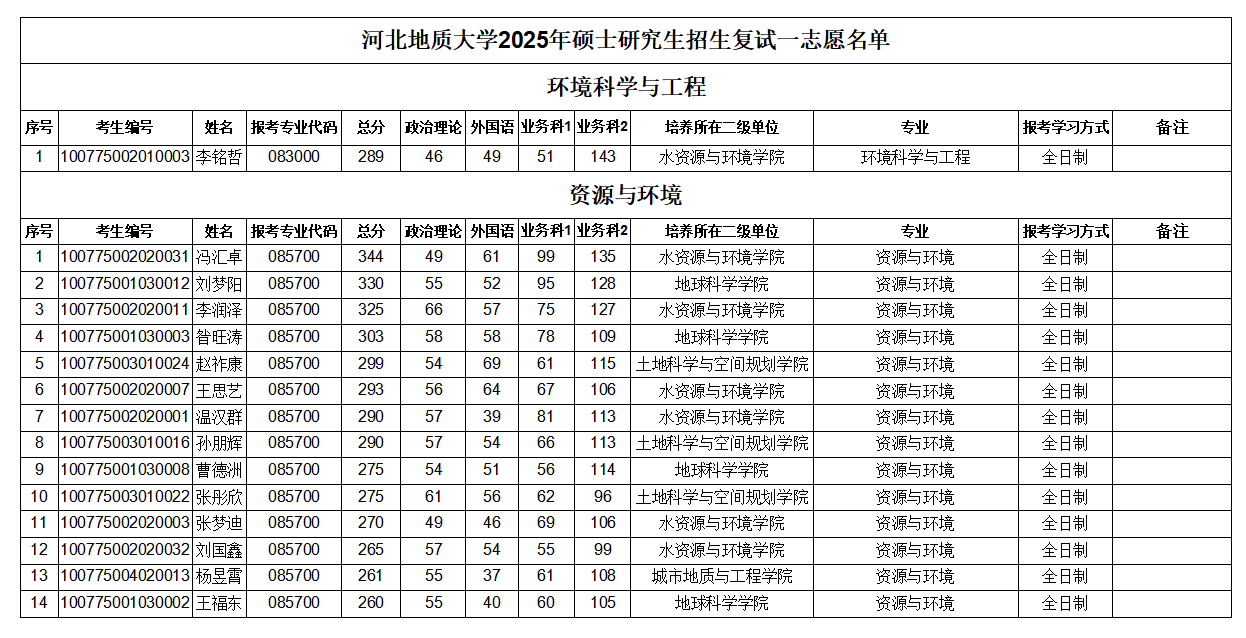 黄色主播 2025年硕士研究生招生复试一志愿名单