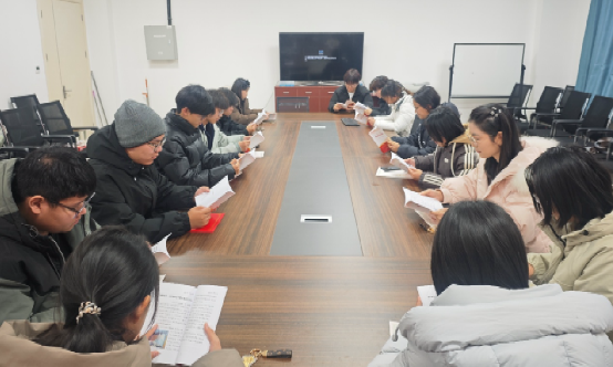 会议室举办水利精神传承读书活动,组织学生党员、入党积极分子共同研读水利先辈事迹资料,在阅读与交流中赓续治水初心。