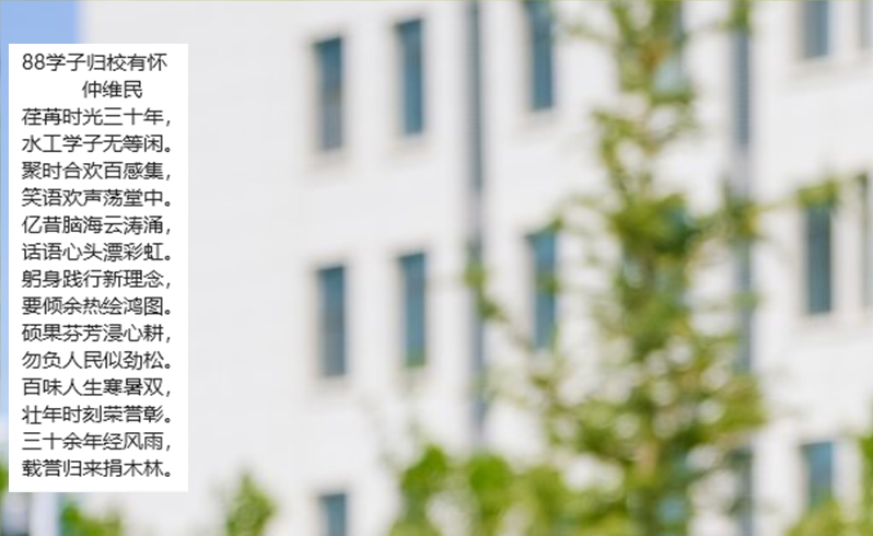 活动现场,大家挥锹填土、浇水灌溉,分工协作,种下一棵棵象征希望的树苗。这片校友林将成为学弟学妹们成长的见证,也寄托着校友们对母校的深情与祝福。校友仲维民此次祖孙三代一同返校,看到新校区一片欣欣向荣,仲老十分激动,赋诗一首。“水工园”校友林,不仅是校友们对母校的一份心意,更是他们对母校未来发展的美好祝愿。这片绿色的希望,将在母校的土地上茁壮成长,见证着一代又一代学子的成长与奋斗。