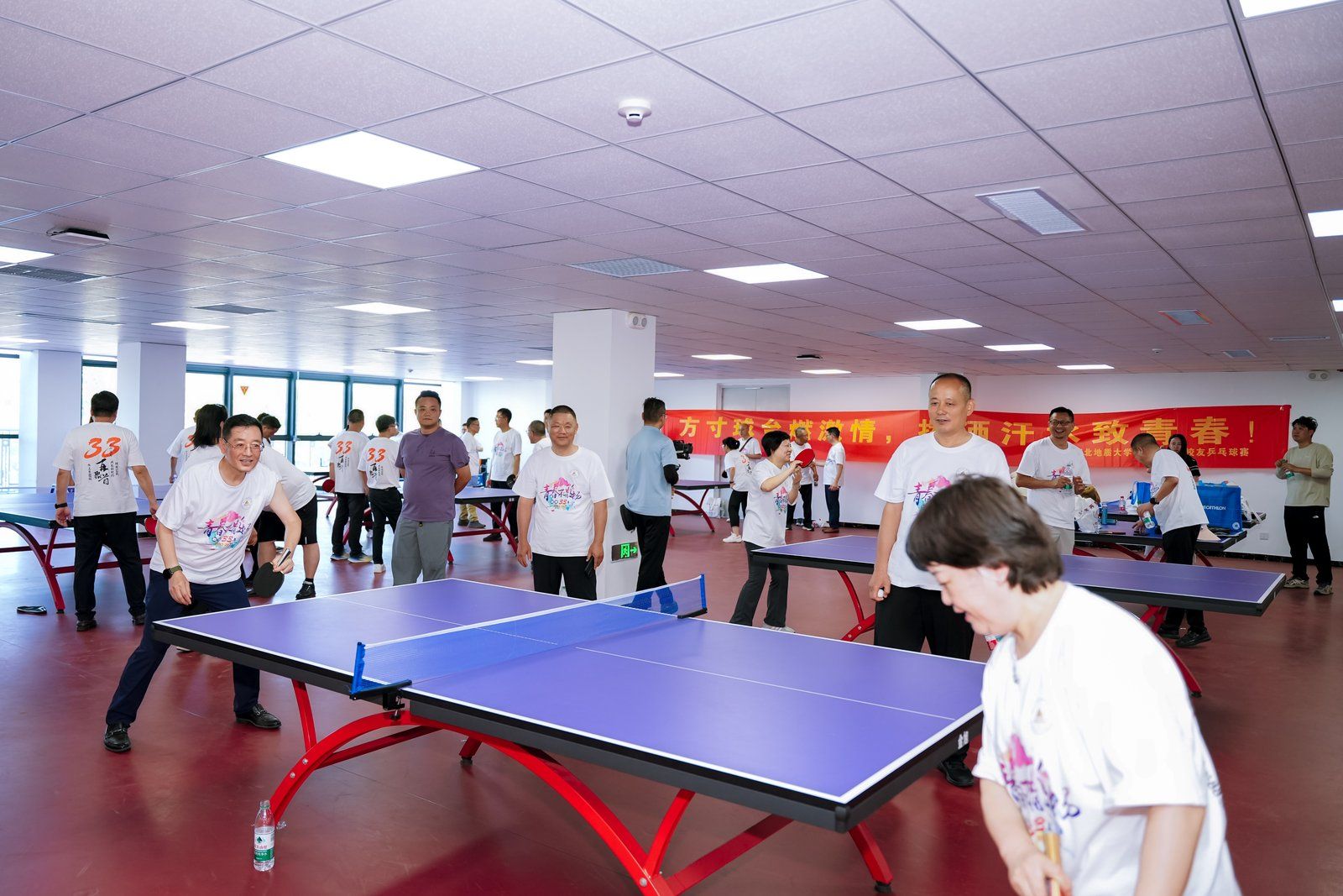 活动最后,校友们换上运动服,在篮球场和乒乓球场上挥洒汗水,用热血与活力诠释着对运动的热爱和对青春的致敬。比赛过程中,校友们团结协作、拼搏奋进,展现了水工系学子的风采,为此次返校之旅画上圆满句号。篮球场上,校友们挥洒汗水,追逐梦想,仿佛又回到那段充满激情与活力的青春岁月。球场上的每一次奔跑、每一次跳跃,都是对青春的致敬,都是对母校的热爱。