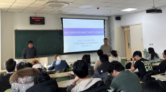 马荣研究员以《内蒙古高原典型湖泊流域地下水循环与生态效应研究》为题,聚焦干旱半干旱地区湖泊生态保护这一重要课题,结合多年实地勘察与系统研究,分享了该区域湖泊演化的核心规律、生态效应的关键影响因素及保护修复的前沿思路。其研究成果兼具理论深度与实践价值,既为相关领域的学术探索提供了重要参考,也为区域生态环境保护与治理提供了科学支撑。互动环节,师生们围绕报告核心内容积极提问,就湖泊生态修复技术、地下水与生态系统互馈关系等问题与马荣研究员深入探讨,现场交流氛围热烈,学术探讨氛围浓厚。